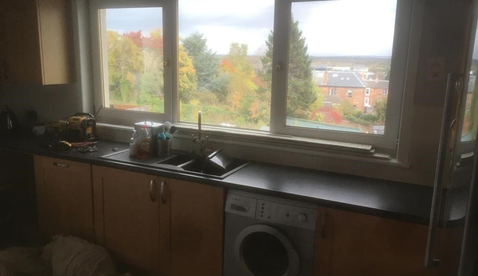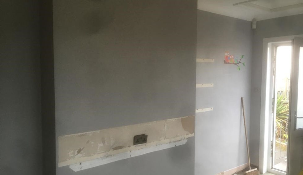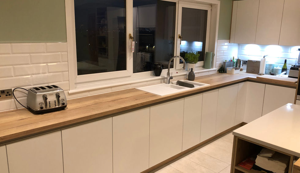 Recent kitchen installed in Hamilton, designed and installed by our very own Tom! Like alot of our jobs these days this job required a wall to be taken down between the kitchen and dining room and install new structural steel. To take the wall down we had to remove the old chimney breasts going up through the roof and repair the roof and tiles all of this building work was carried out by ourselves. For the kitchen installation itself we carried out all joinery work (including repairs to the existing subfloor), plastering, tiling, decoration...a complete turnkey project, project managed by ourselves. We even managed to create a hidden storage solution for the customers ironing board, can you spot it in the pictures?
